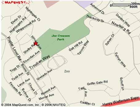 From CINCINNATI - I-71 follow signs to airport. be in the left turn lane to go west onto i-264 (exit 5 watterson expressway.) follow this 8 exits onto poplar level road north from the far right exit lane. follow signs to the louisville zoo. go right onto trevilian way. turn left just before the zoo entrance onto illinois avenue. use the lnc parking lot on the right at the LOUISVILLE NATURE CENTER. From LEXINGTON - I-64 west, get off at the exit past hurstbourne lane in the left exit lane onto exit I-264(watterson expressway) south toward airport. follow this 5 exits onto poplar level road north from the right exit lane. follow signs to the louisville zoo. turn right onto trevilian way. turn left just before the zoo entrance onto illinois avenue lane. use the lnc parking lot on the right at the LOUISVILLE NATURE CENTER. |