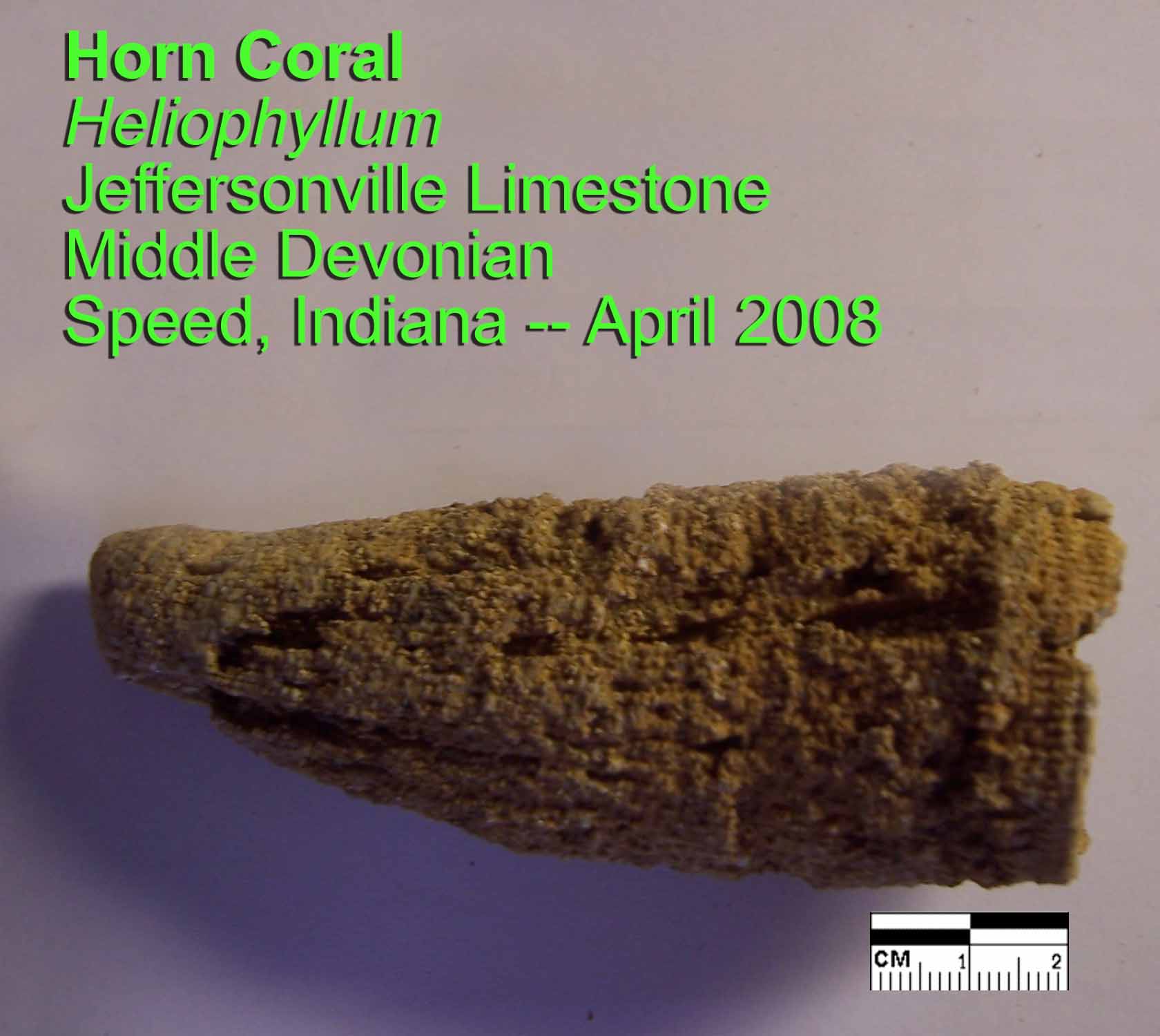 Heliophyllum sp. Horn Coral, Jeffersonville Limestone, Speed, Clark Co., IN